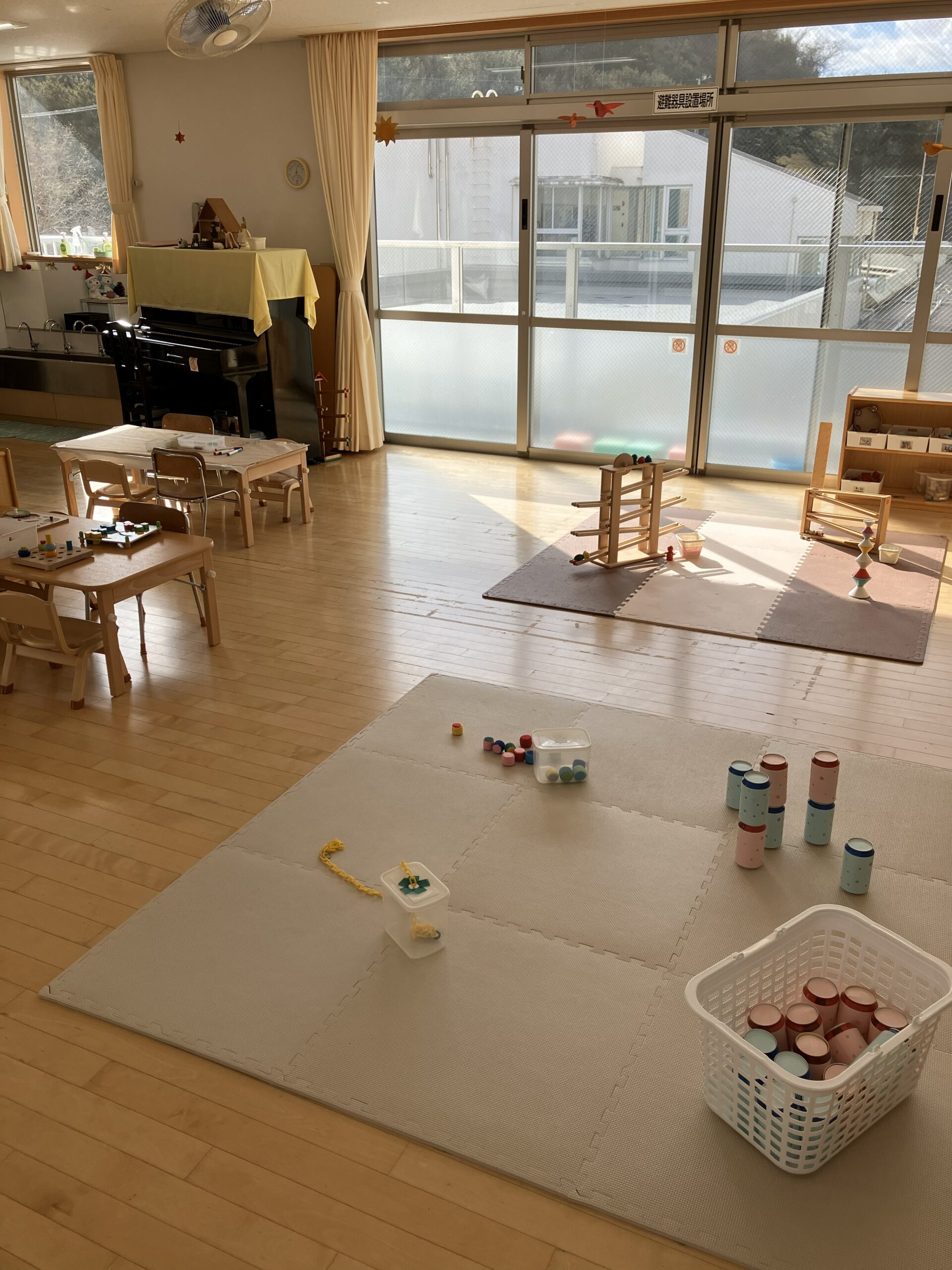 先生と遊んだり、自分で遊びを見つけて積み木や列車などをしたり、ゆっくり絵本を読むこともできます。