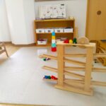 先生と遊んだり、自分で遊びを見つけて積み木や列車などをしたり、ゆっくり絵本を読むこともできます。