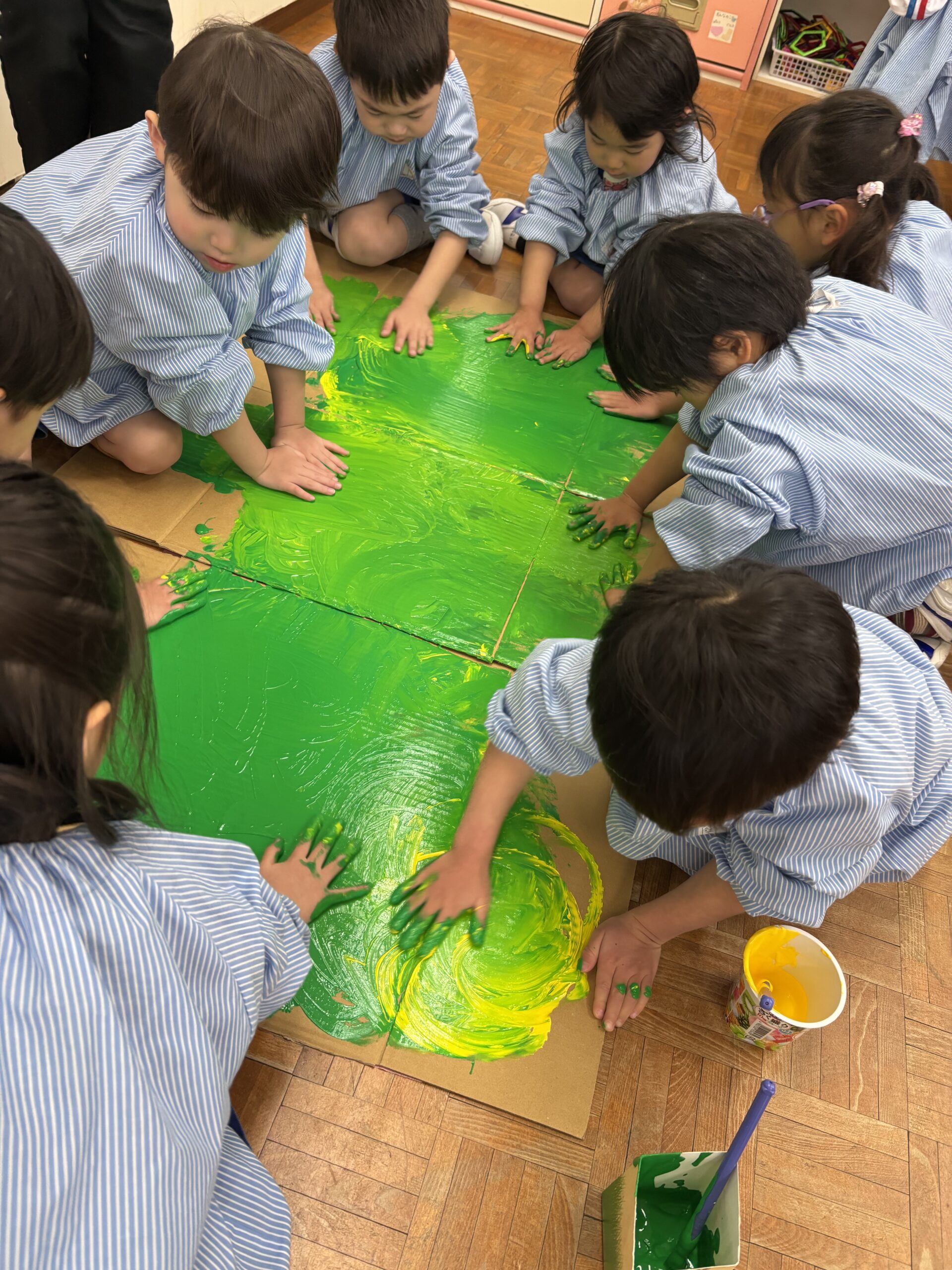 「みんなで手ぬりぬり楽しい」「どんな食べ物にしようかな」「草はふわふわがいい」などそれぞれがイメージを膨らませて楽しんでいましたよ🐜🐝🌳