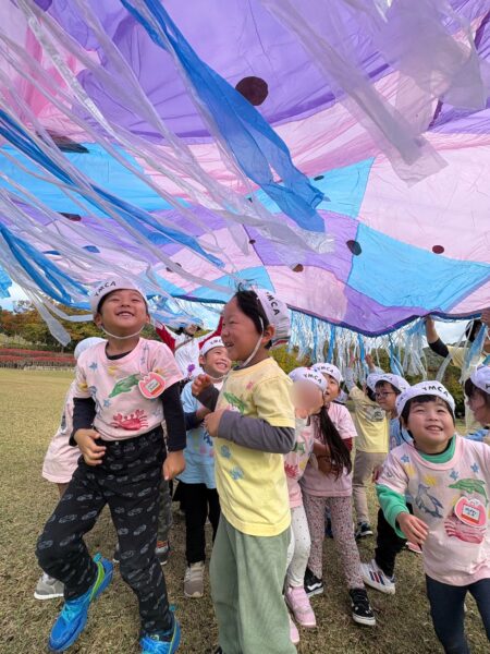 森の広場で、クラゲパラバルーンで遊んだり、ウミヘビさんを踏まないようにジャンプしてお友達になったりみんなで身体をたくさん使い楽しむことができていましたよ🐡