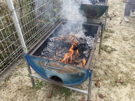 半ドラを使ってウェルネスの先生やアフターの先生たちに火起こしをしていただきました🔥