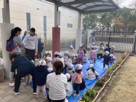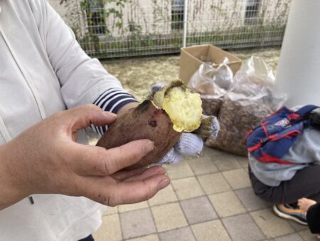 にじ組(2歳児)が1学期から育ててくれたさつまいも🍠を使って、みんなで「焼き芋パーティー」をしましたよ。